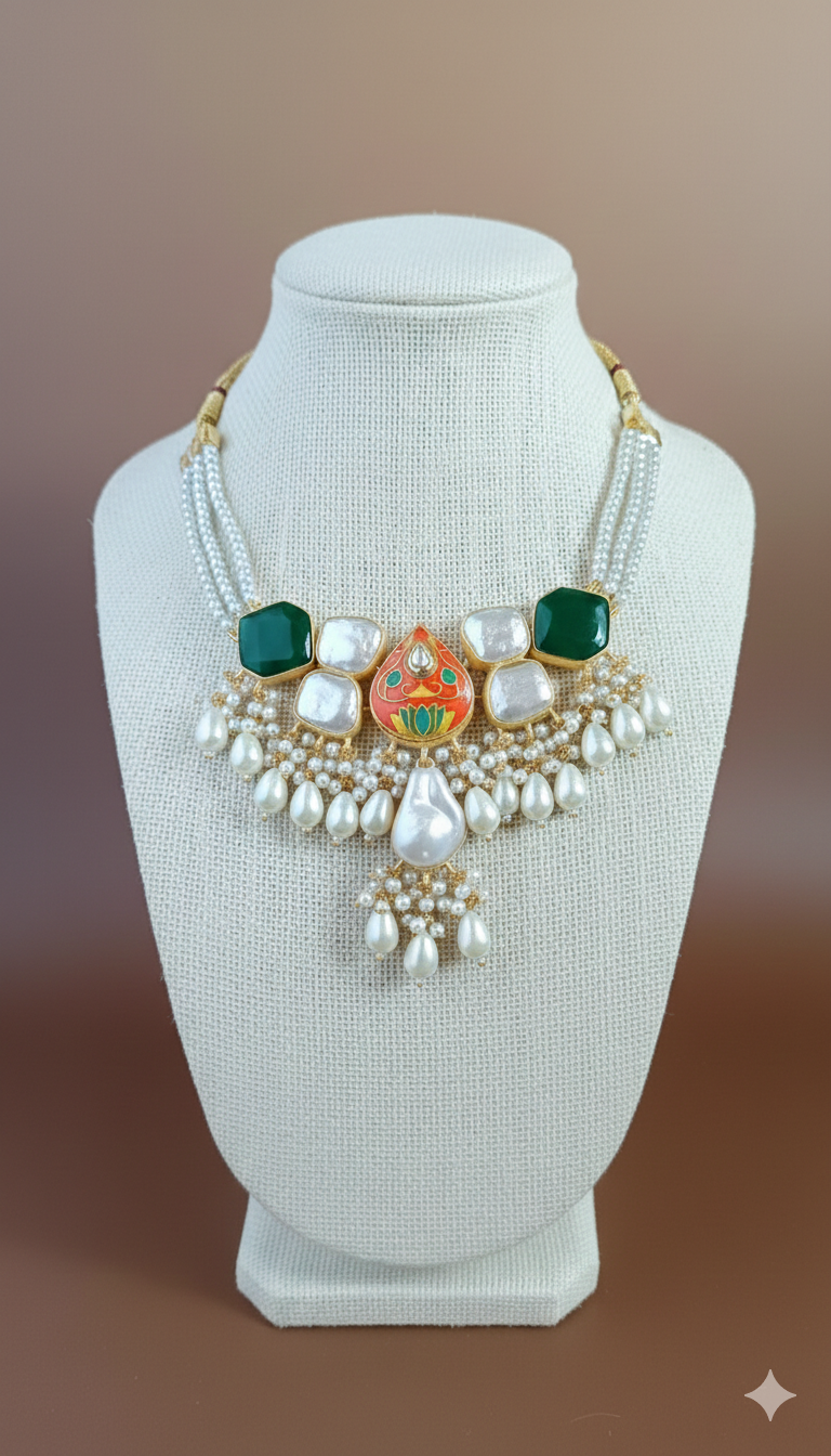 Handcrafted_Uncut Multicolour Stone Necklace Set