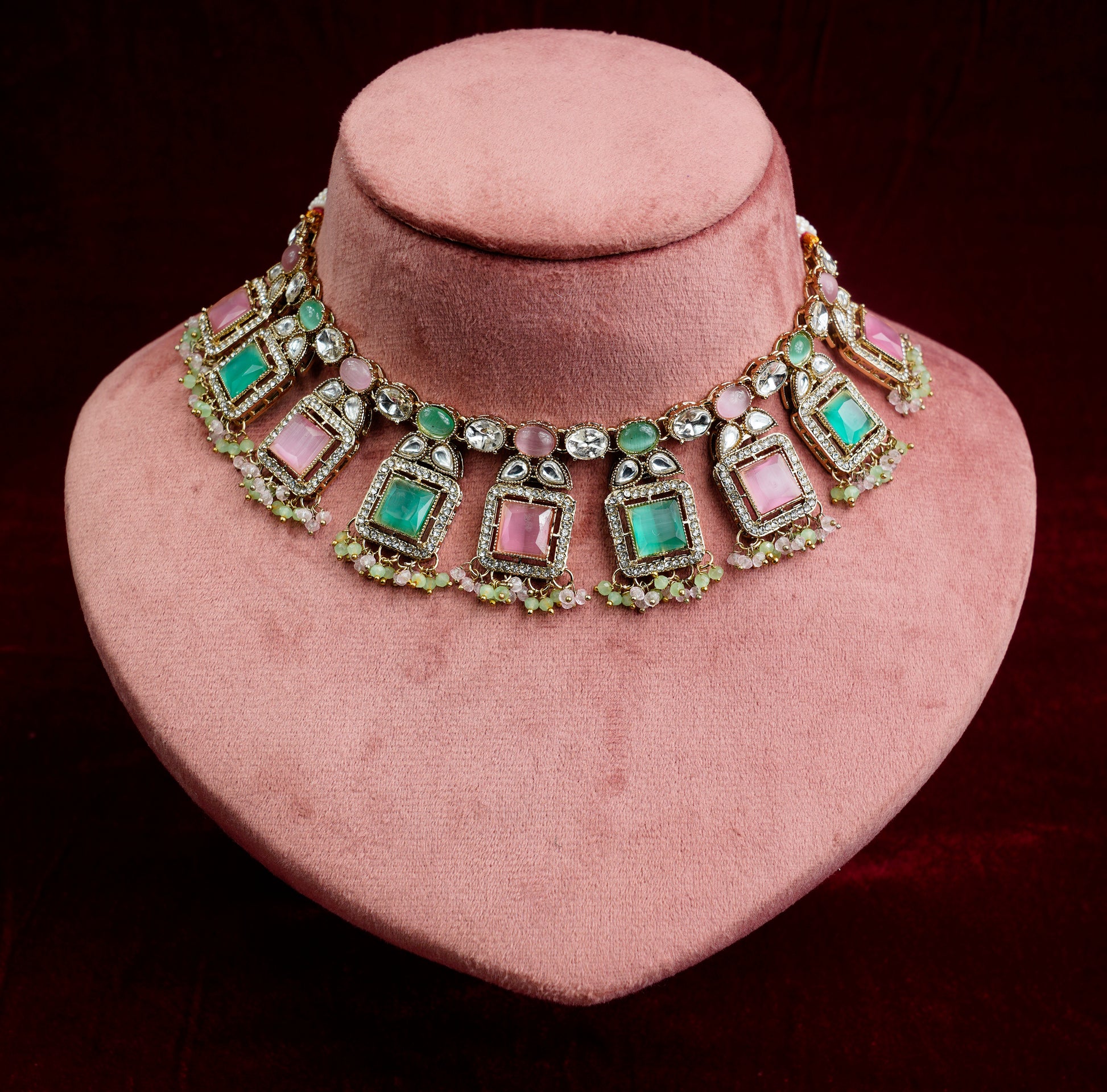 Kundan Polki_Multi Colour Semi Bridal Necklace Set